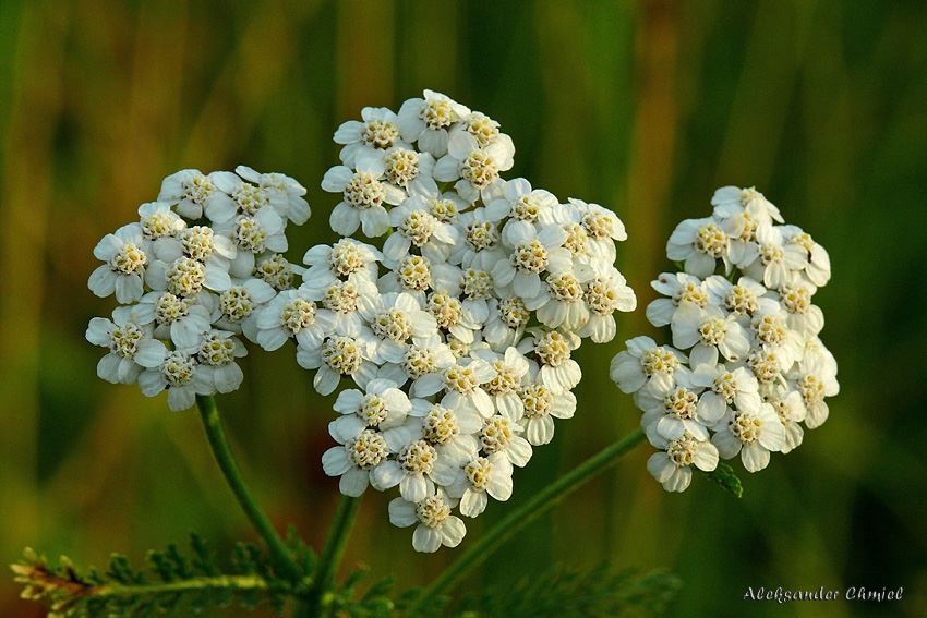 Krwawnik pospolity (Achillea millefolium agg.) Ta rozpowszechniona już na całym świecie bylina jest bardzo cennym surowcem leczniczym. Właśnie o tej porze roku na łąkach i pastwiskach można spotkać jej białe lub jasnoróżowe kwiatki. Owocem krwawnika są bardzo drobne, podłużne, srebrzystoszare niełupki. Przetwory zielarskie można przygotować z ziela, kwiatów oraz liści, które zawierają olejki eteryczne, mające szerokie spektrum działania, dzięki bardzo urozmaiconemu składowi chemicznemu. Występuje w