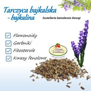 Tarczyca bajkalska, zwana również bajkaliną to niewysoka bylina z rodziny Lamiaceae – Jasnotowatych, o pięknych, niebieskich kwiatach wargowych i niedużych lancetowatych liściach. Miejscem naturalnego występowania tej rośliny jest wschodnia Syberia, północne Chiny, Japonia i Mongolia, ale spotkać można ją też w Polsce, na specjalnych plantacjach, lub w ogrodach botanicznych.