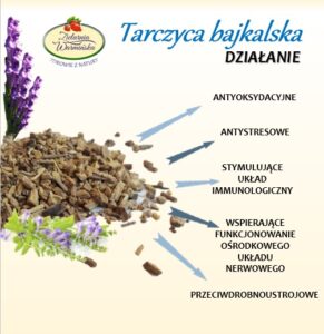 Tarczyca bajkalska znana jest także z właściwości stymulujących układ immunologiczny, przez co zaliczana jest do grupy adaptogenów, podobnie jak ashwagandha, różeniec chiński, żeń -szeń syberyjski, o których pisaliśmy w poprzednich artykułach 🙂 Najnowsze doniesienia naukowe potwierdzają również przeciwnowotworowe działanie tego surowca.