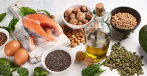 Źródłem ALA są produkty pochodzenia roślinnego, do których zaliczamy olej lniany kliknij tutaj, rzepakowy, sojowy, orzechy włoskie, migdały, siemię lniane czy nasiona chia.