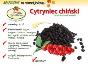 Kolejną z roślin o właściwościach adaptogennych, której chcielibyśmy poświęcić trochę uwagi jest cytryniec chiński (Schisandra chinensis ). Jest to pnącze pochodzące z obszaru Chin o bardzo dekoracyjnych owocach, zebranych w grona czerwonych jagód. Owoce cytryńca mają charakterystyczny, cytrusowy smak i wykorzystywane są w przygotowywaniu wszelkiego rodzaju przetworów. Posiadają również szerokie właściwości lecznicze. Na Dalekim Wschodzie, działanie cytryńca od lat wykorzystywane jest w ziołolecznictwie i medycynie naturalnej. Dzięki walorom dekoracyjnym, kulinarnym, leczniczym, a także kosmetycznym, zainteresowanie cytryńcem wzrosło, a gatunek ten uprawia się obecnie nie tylko w Azji, ale także w Europie oraz w Ameryce Północnej.